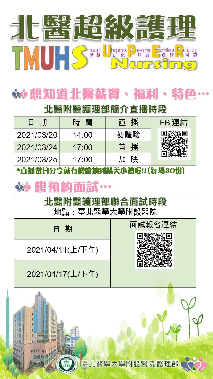 一、因應疫情,本院擬採網路直播方式進行招募簡介,並舉辦護理部徵選面試活動。敬邀 貴校同學參與。
